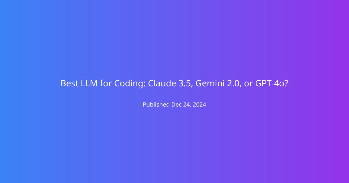 Determining the best LLM for coding: Claude 3.5, Gemini 2.0, or GPT 4o? is not straightforward. Each model has its strengths and weaknesses.