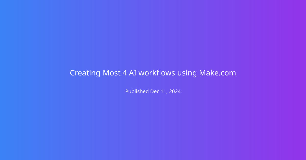 These are just examples; you can customize these workflows to fit your specific needs and integrate other apps as required. Remember to consult the Make.com documentation for detailed instructions on connecting and configuring each module.