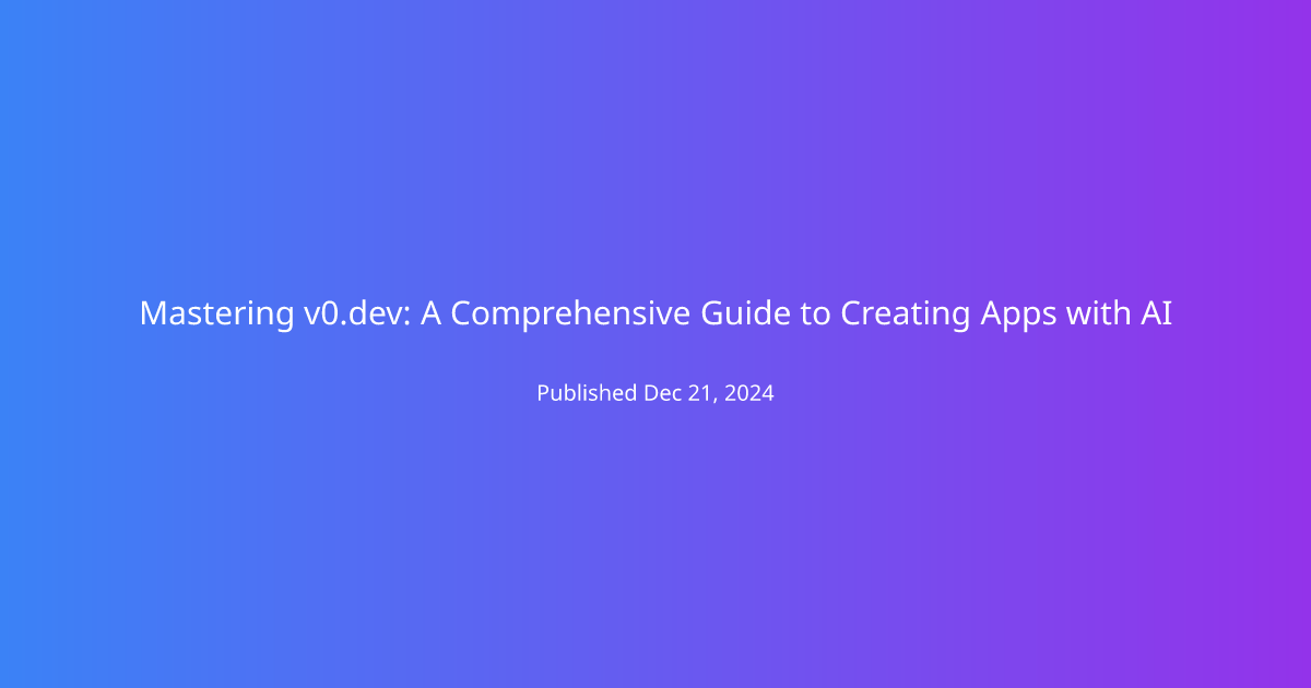 Dec 21, 2024A comprehensive guide to mastering v0.dev, an AI-powered platform by Vercel for creating user interfaces. Learn how to use its features, create v0 app efficiently, and leverage its AI capabilities for modern web applications.