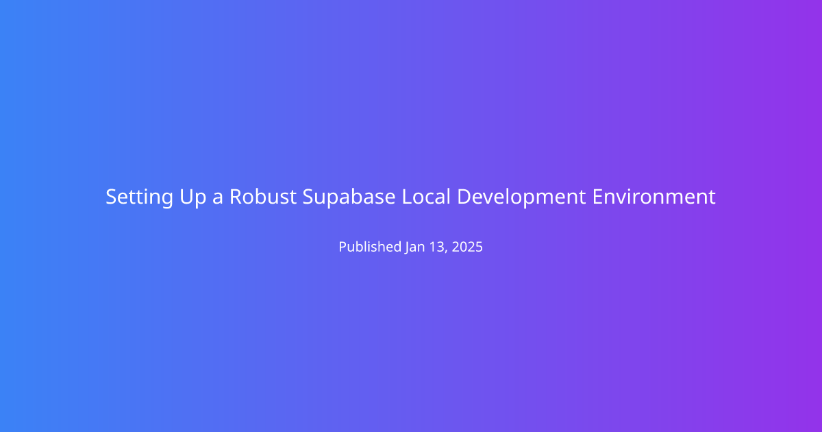 Jan 13, 2025Learn how to set up a robust Supabase local development environment for efficient software development. This guide covers Docker, CLI, email templates, database migrations, and testing.